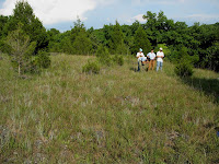 The other day, one of our plots was right in the center of a dolomite glade. Dolomite is just a type of limestone that contains magnesium, so the soil in glades here is very calcareous. Glades are typically very dry and exposed, with very little overstory vegetation. They usually appear as grassy openings because of the high pH and shallow depth to the bedrock. Over time however, Red cedars (Juniperus virginiana), are slowly overgrowing glades. Regular forest fires help to maintain them by keeping the cedar population down.