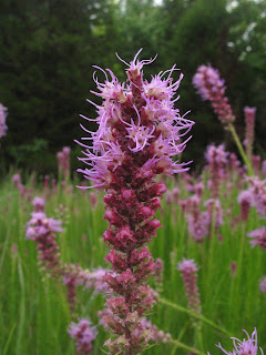 Our botany crew was invited to our boss Susan Farrington's house for dinner. On the way there we stopped on the side of a road to see a classic prairie species. The Liatris pycnostachya (Prairie Blazing Star).